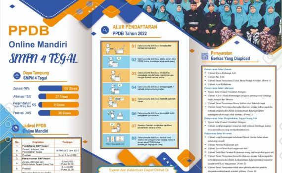 Penerimaan Peserta Didik Baru (PPDB) Tahun Pelajaran 2022/2023 dilaksanakan secara online dengan mengakses situs kotategal.siap-ppdb.com. Pendafataran dimulai dari tanggal 30 […]