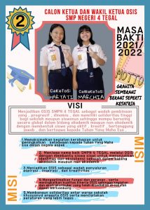 Untuk melihat calon yang mengikuti pemilihan tersebut silahkan dilihat, didengarkan, diperhatikan dan dipertimbangkan mana calon yang paling berkesan dan memungkinkan untuk memajukan SMP Negeri 4 Tegal.